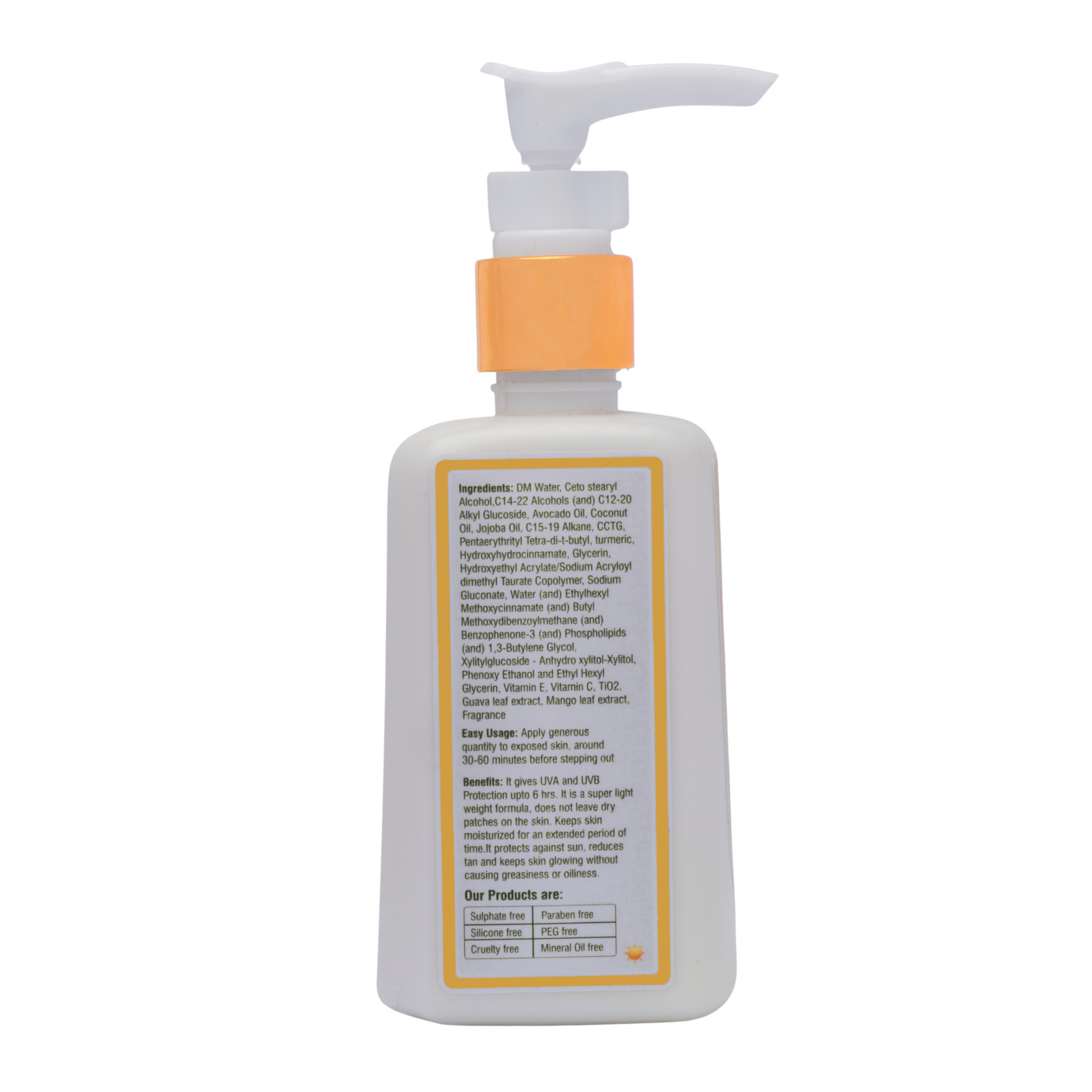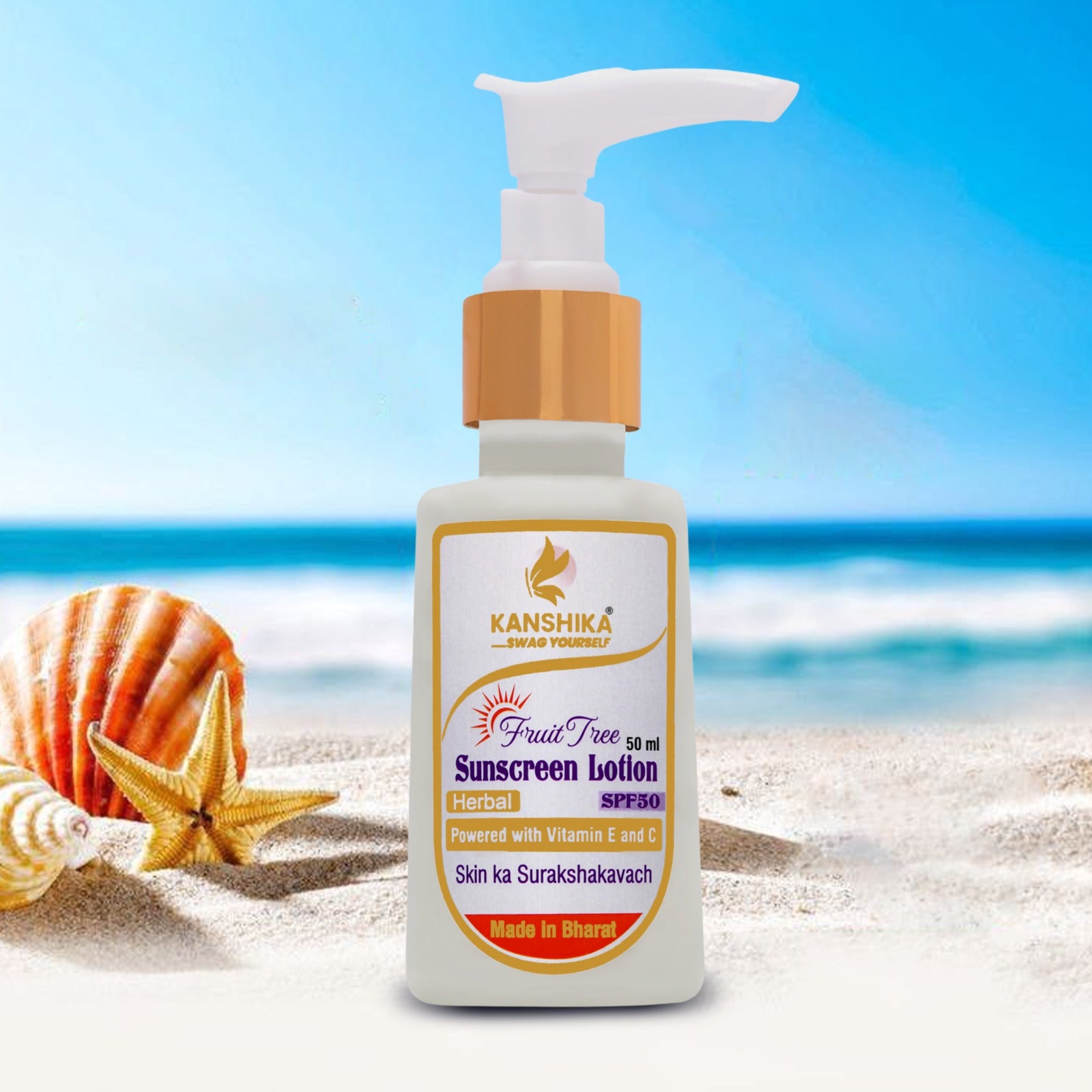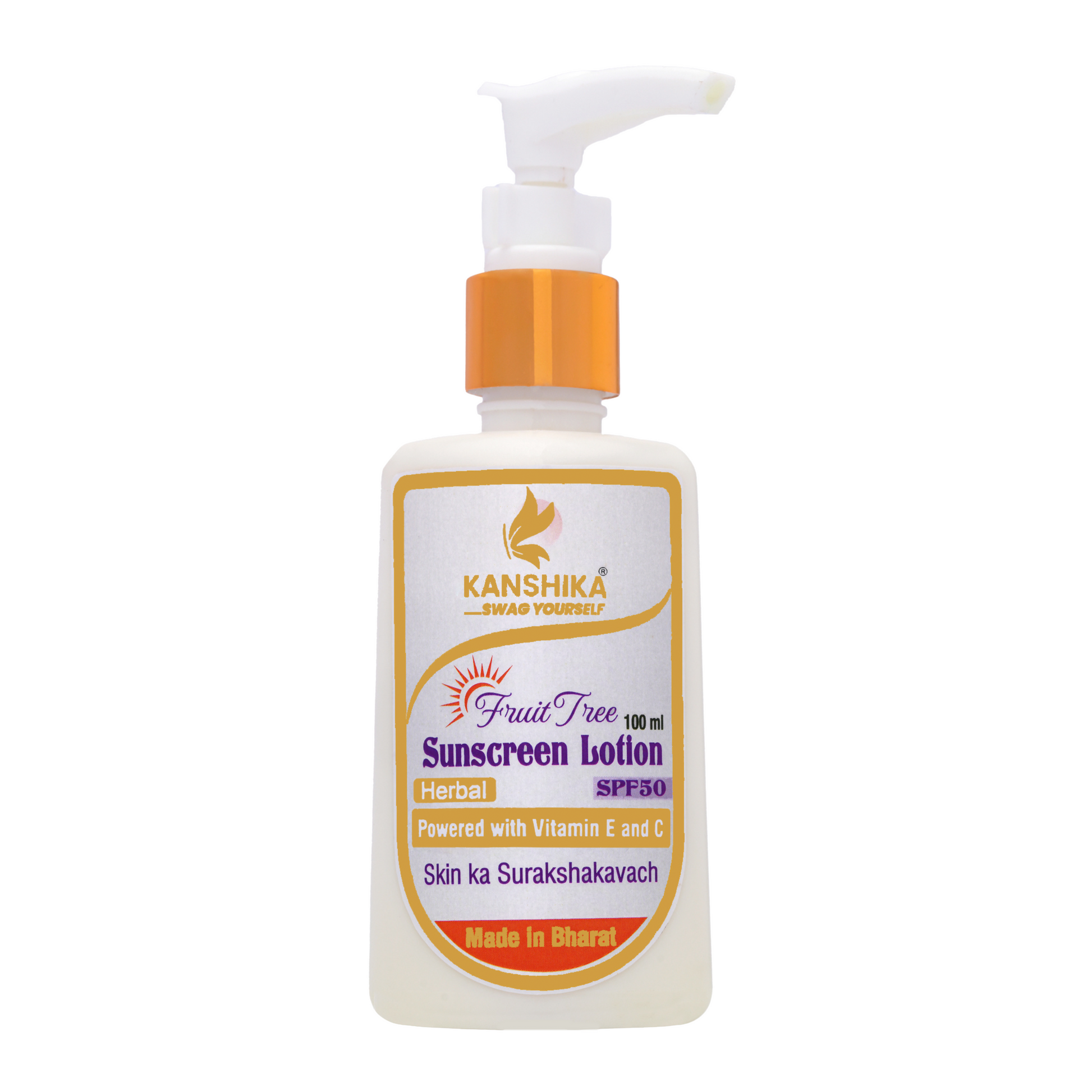 Protect your skin with Kanshika Fruit Tree Sunscreen Lotion (SPF 50). This lightweight, non-greasy sunscreen keeps your skin safe from harmful sun rays while keeping it soft, smooth, and glowing. It’s made with natural ingredients like Avocado Oil, Jojoba Oil, Turmeric, and Titanium Dioxide to not only protect but also nourish and care for your skin. With Vitamin E and Vitamin C, it helps your skin look fresh and youthful. This sunscreen is perfect for all skin types, giving you long-lasting hydration without making your skin oily.