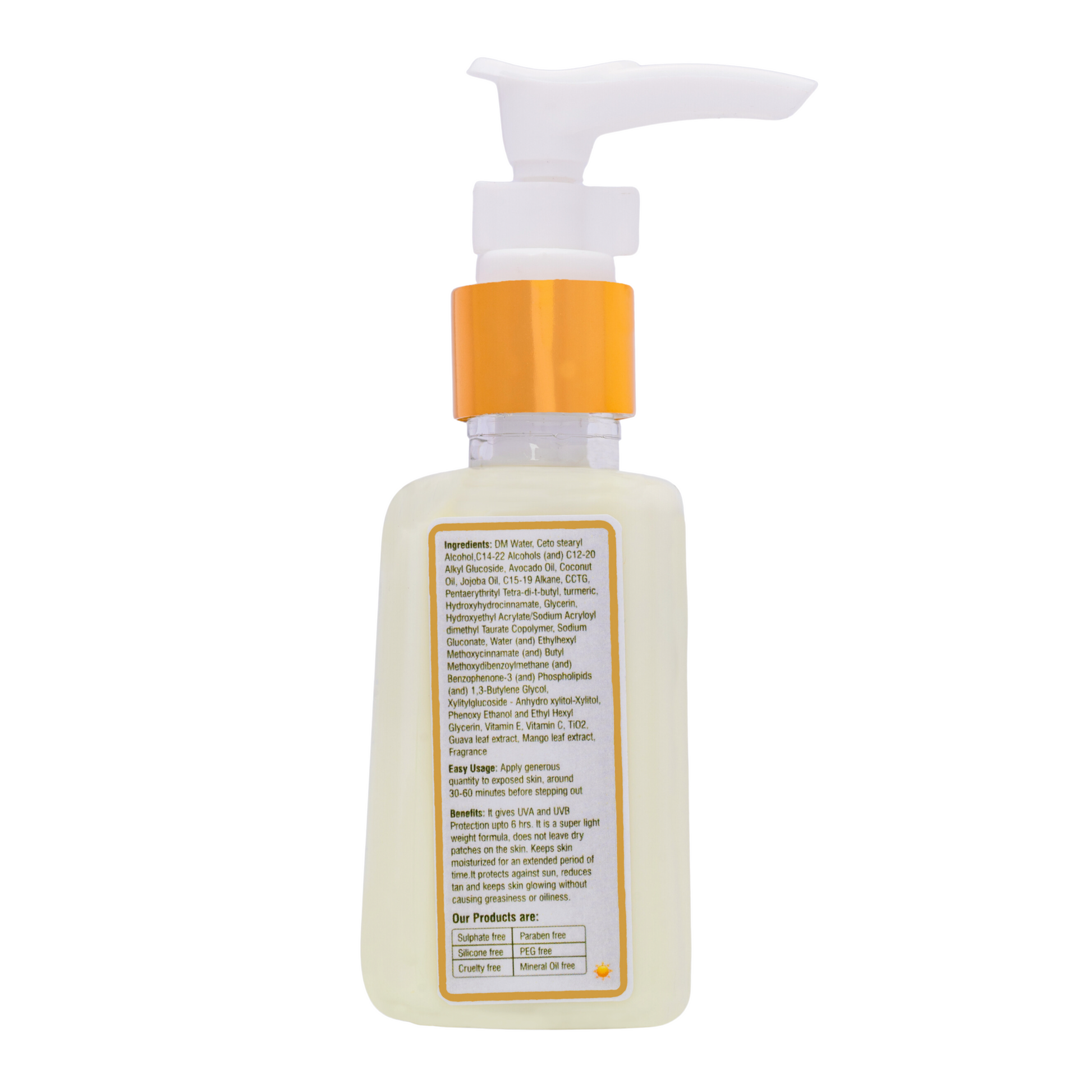 It gives Protection against sun UVA, UVB rays, super lightweight Formula, enhances skin texture and keeps skin glowing without causing Greasiness.